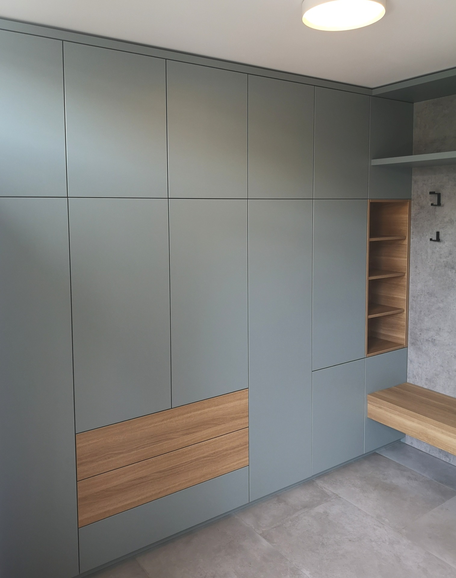 Kuchyně, vestavěné skříně, knihovny, zařízení provozoven a kanceláří.